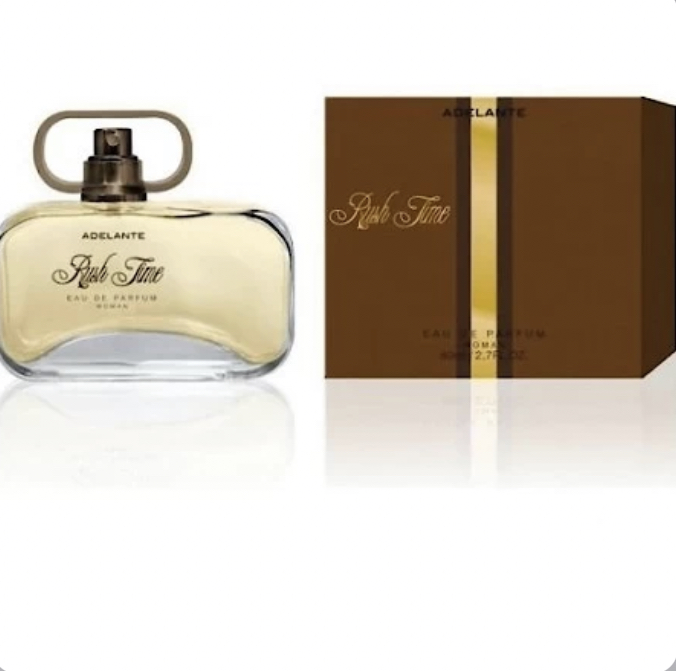 - Το Rush Time Eau de Parfum Adelante έχει ταξινομηθεί ως γυναικείο άρωμα και ανήκει στις οικογένειες Citrus και Floral. Σύνθεση Το Περγαμόντο σχηματίζει την εναρκτήρια χορδή της σύνθεσης, στην καρδιά ─ Άνθη πορτοκαλιάς (άνθη πορτοκαλιάς), Υλάνγκ-υλάνγκ και Κρίνος. Η βάση είναι κεχριμπάρι, σανταλόξυλο και βανίλια.