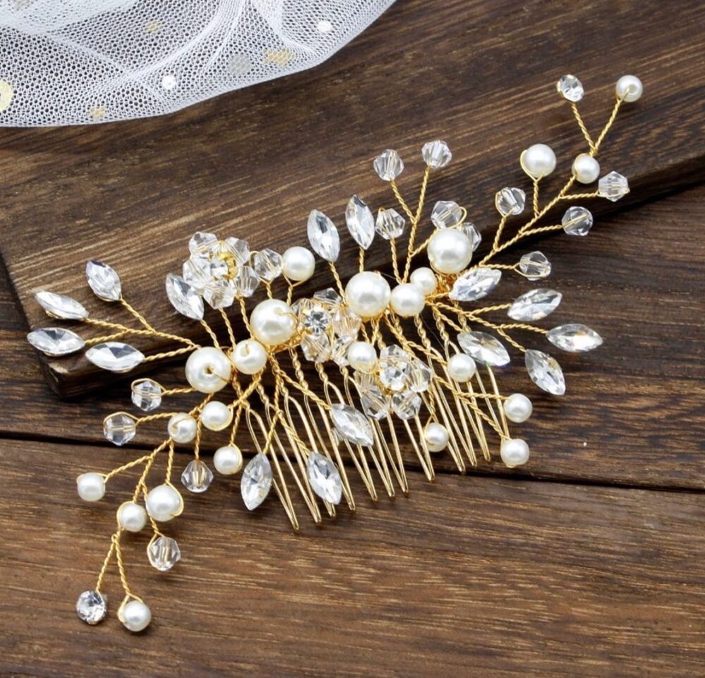 χτένα μαλλιών σε χρυσή με κρύσταλλα και πέρλες