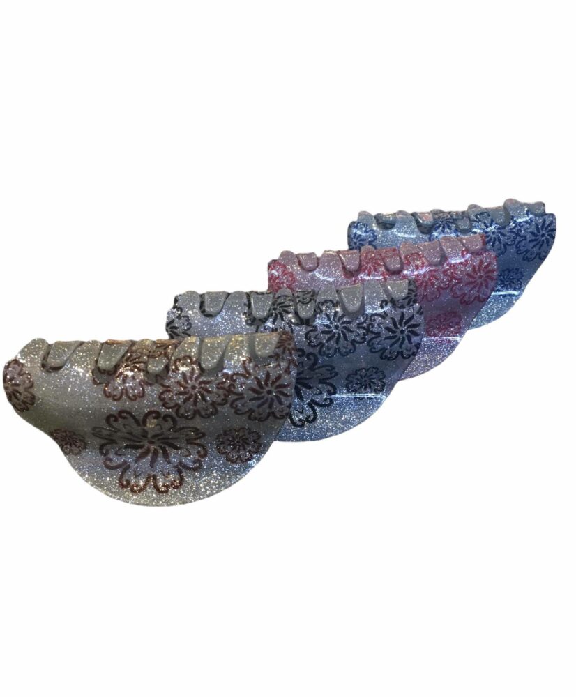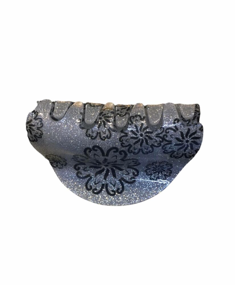 κλαμερ ασημί γκλιτερ με μαύρα λουλούδια