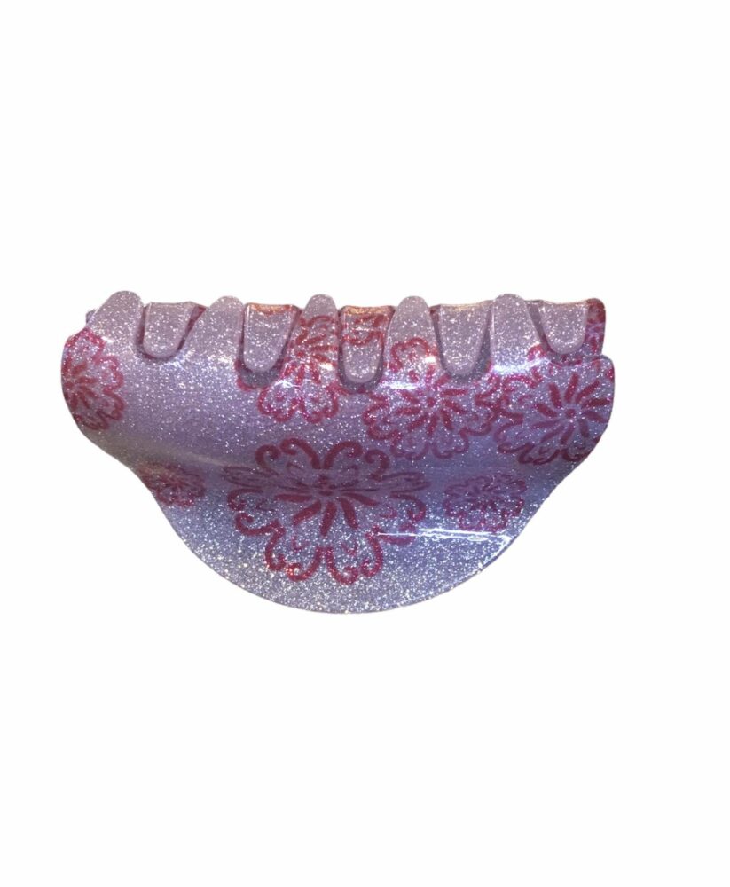 κλαμερ ροζ γκλιτερ με φούξια λουλούδια