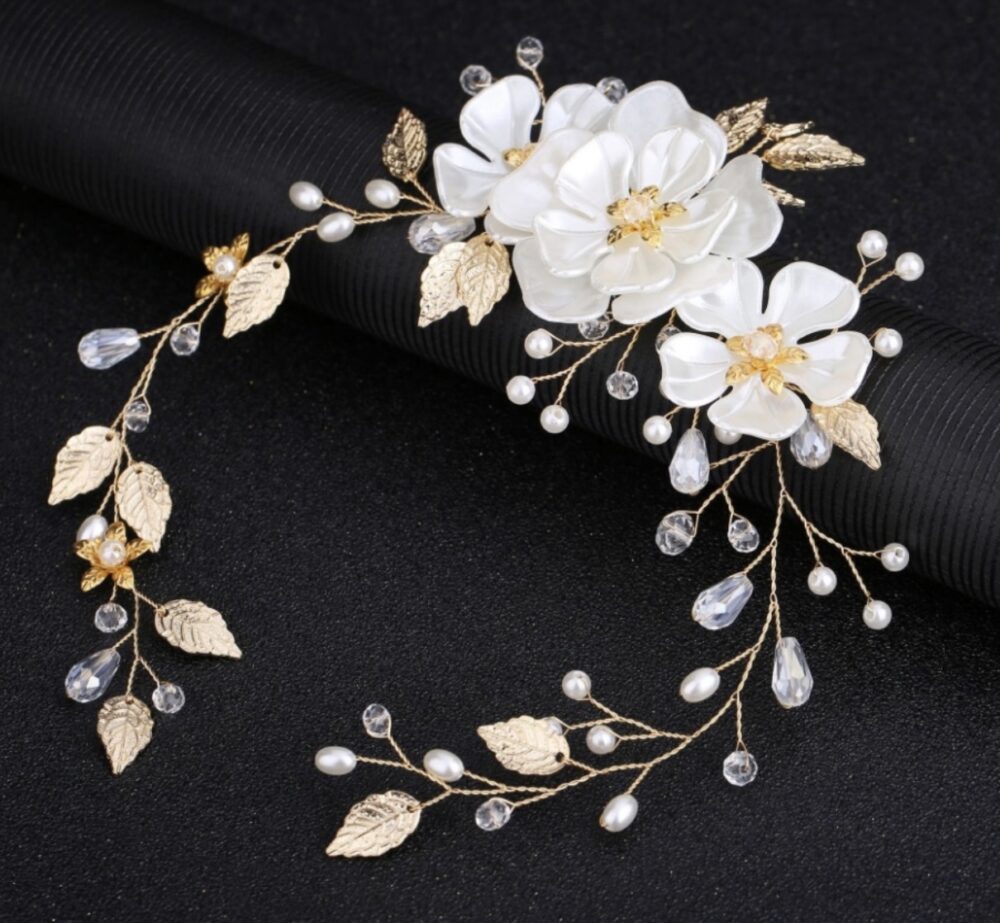 Νυφικό κουαφ με λουλούδια και χρυσές λεπτομέρειες