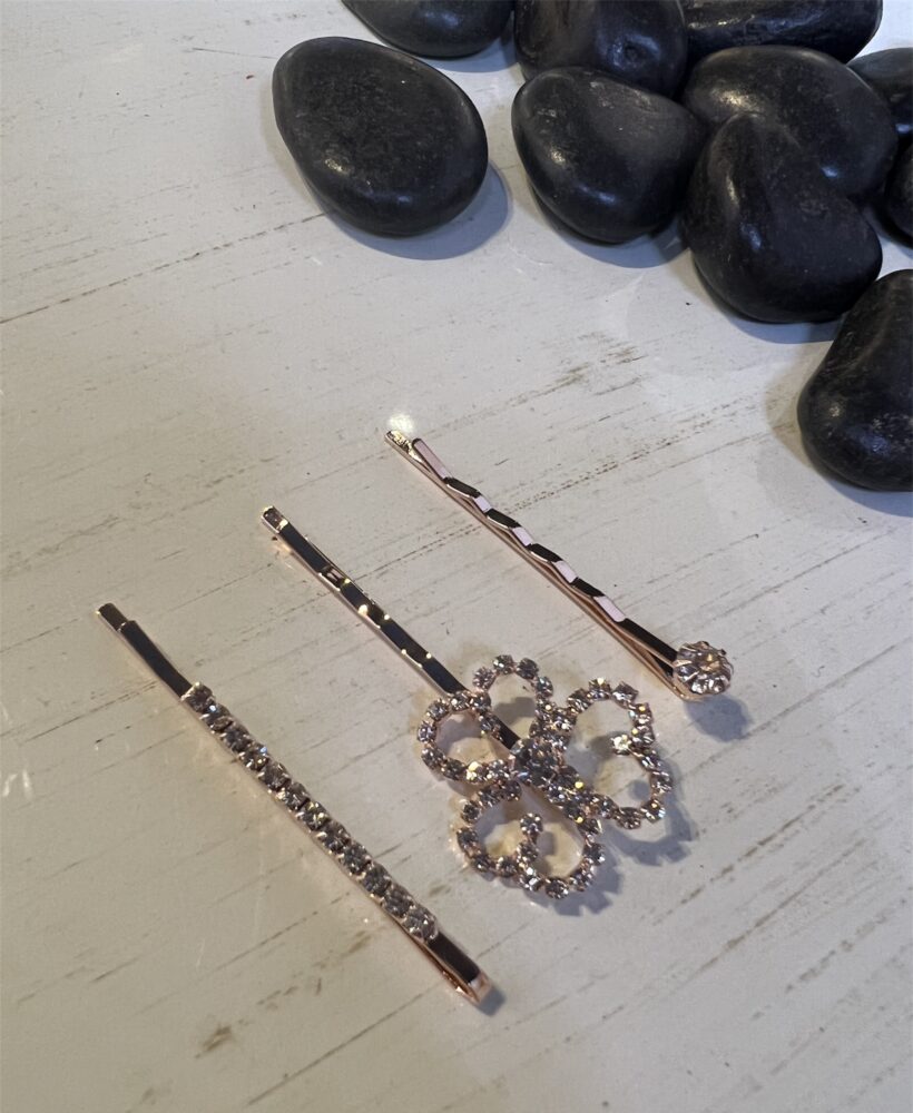 Σετ 3 τμχ Τσιμπιδάκια gold rose με λουλούδι και διαμάντια