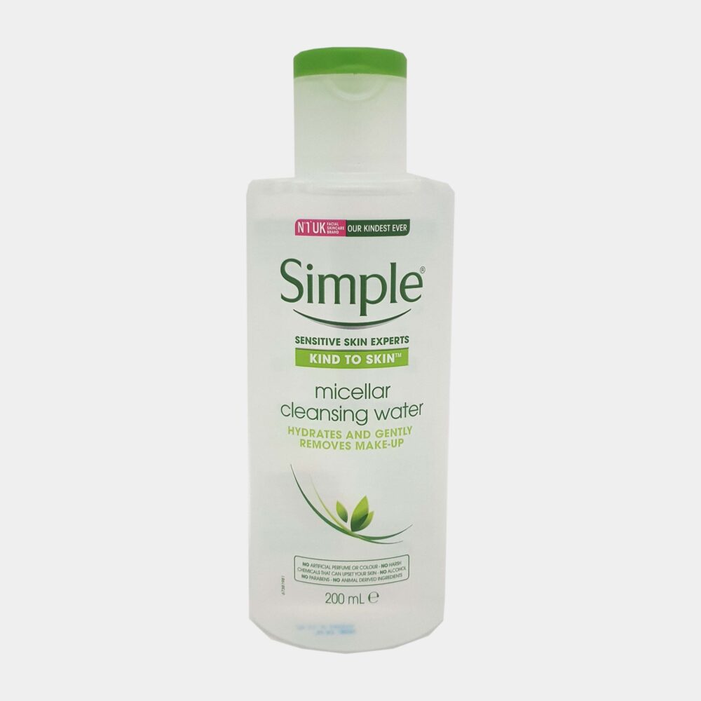 Το Simple Micellar Cleansing Water είναι το πιο προηγμένο αλλά απαλό καθαριστικό προσώπου μέχρι σήμερα. Βοηθά στην απομάκρυνση των ρύπων που είναι γνωστό ότι ερεθίζουν το δέρμα και το αφήνει καθαρό και φρέσκο. Αυξάνει αμέσως την ενυδάτωση του δέρματος κατά 90%! Αυτό το καινοτόμο καθαριστικό προσώπου είναι φτιαγμένο με συστατικά που αγαπούν το δέρμα και είναι ιδανικό για όλους τους τύπους δέρματος, όπως η βιταμίνη Β3, η βιταμίνη C και το τριπλό καθαρό νερό. Δεν περιέχει τεχνητά αρώματα, χωρίς χρώμα ή βαφή και χωρίς σκληρές χημικές ουσίες που μπορούν να αναστατώσουν το δέρμα σας, καθιστώντας το τέλειο ακόμη και για ευαίσθητο δέρμα.