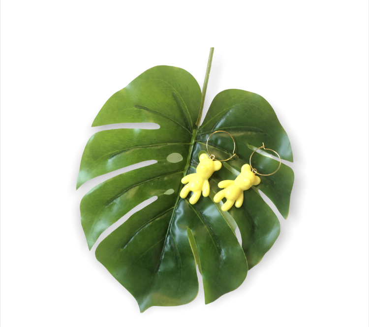 Σκουλαρίκια κρεμαστά με κίτρινο αρκουδο