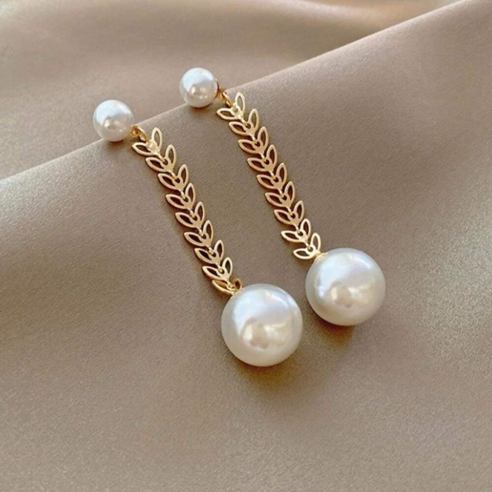 Σκουλαρίκια μάκρη πέρλες με λεπτομέρεια χρυσό