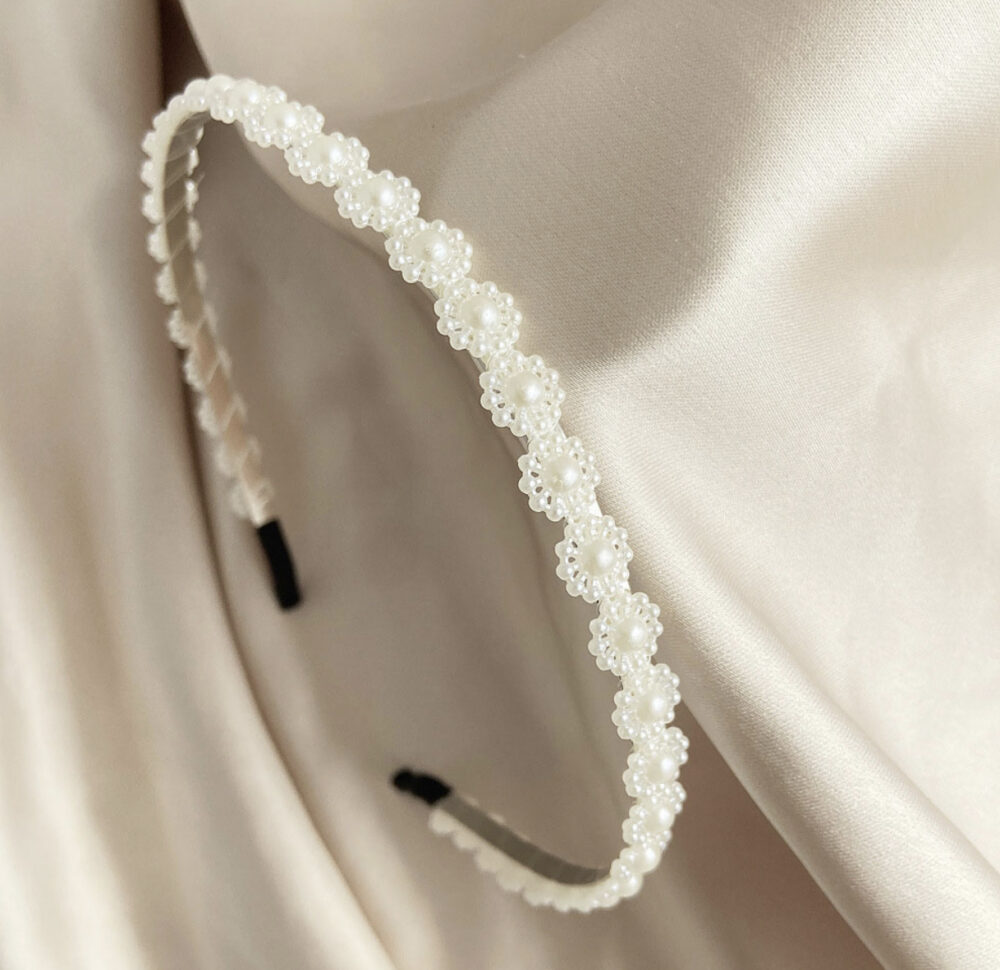 Στέκα λευκή με λουλουδάκια και πέρλες