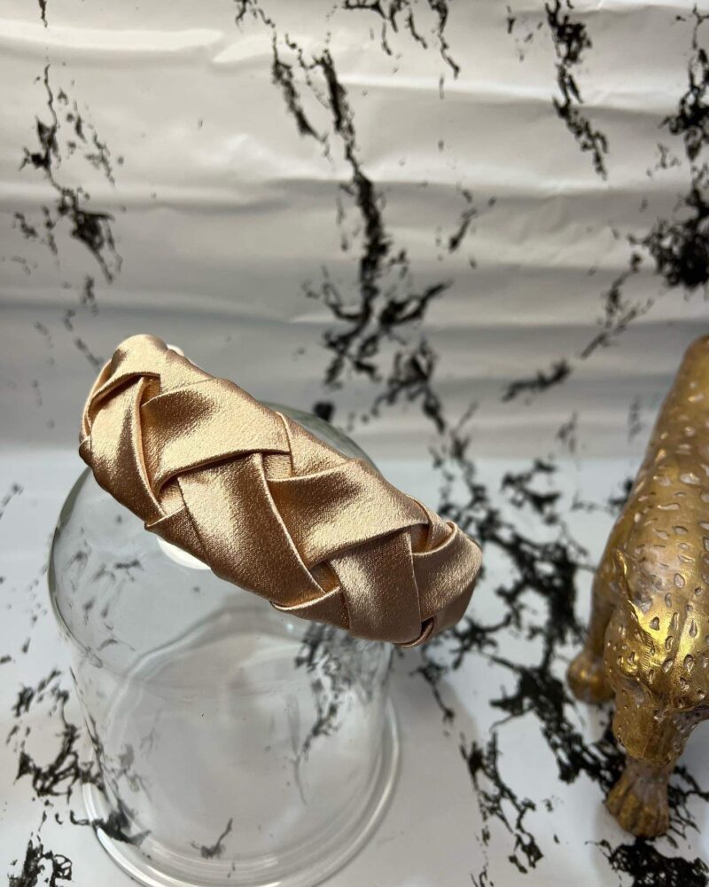 Στέκα με σατέν ύφασμα και σχέδιο πλεξούδα μπεζ