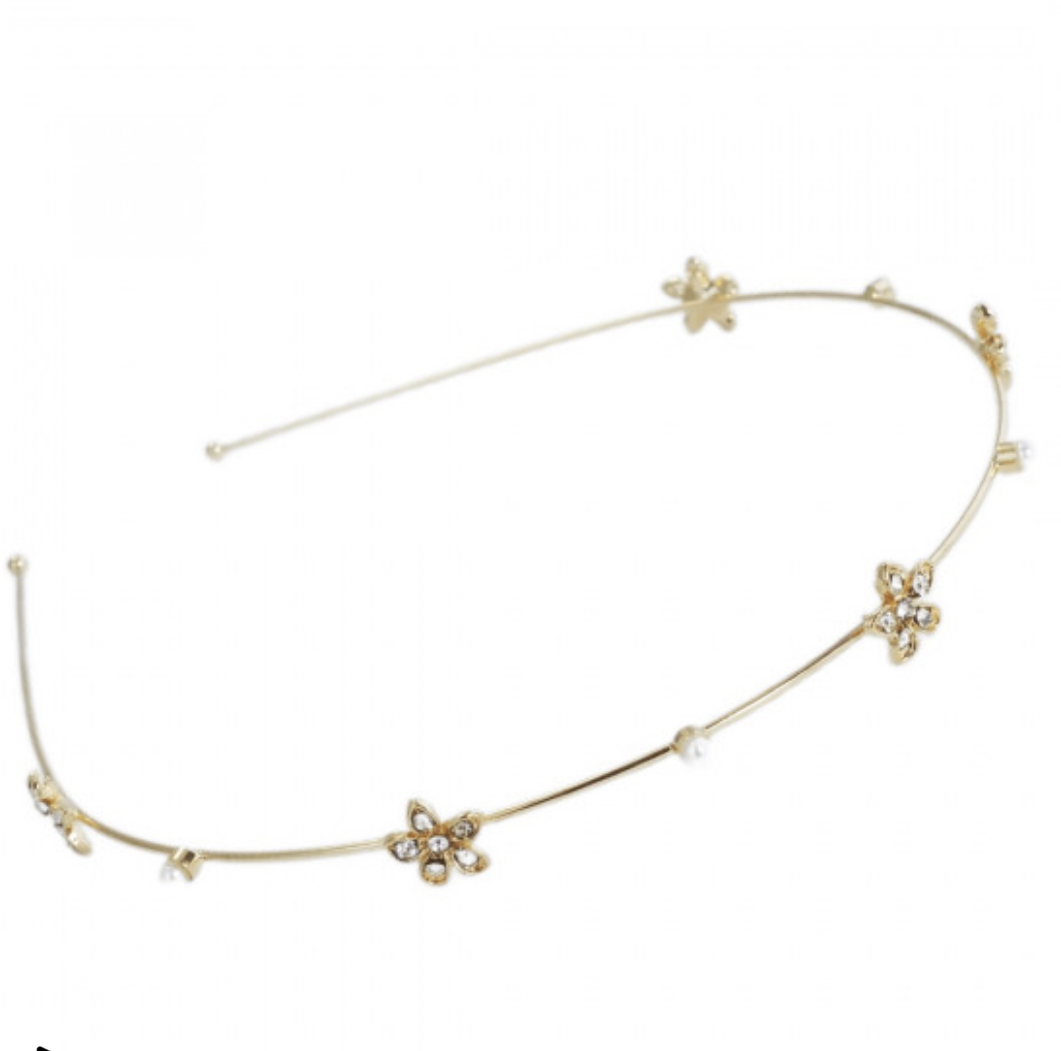 Στέκα μεταλλική χρυσή με πέρλες και λουλούδια