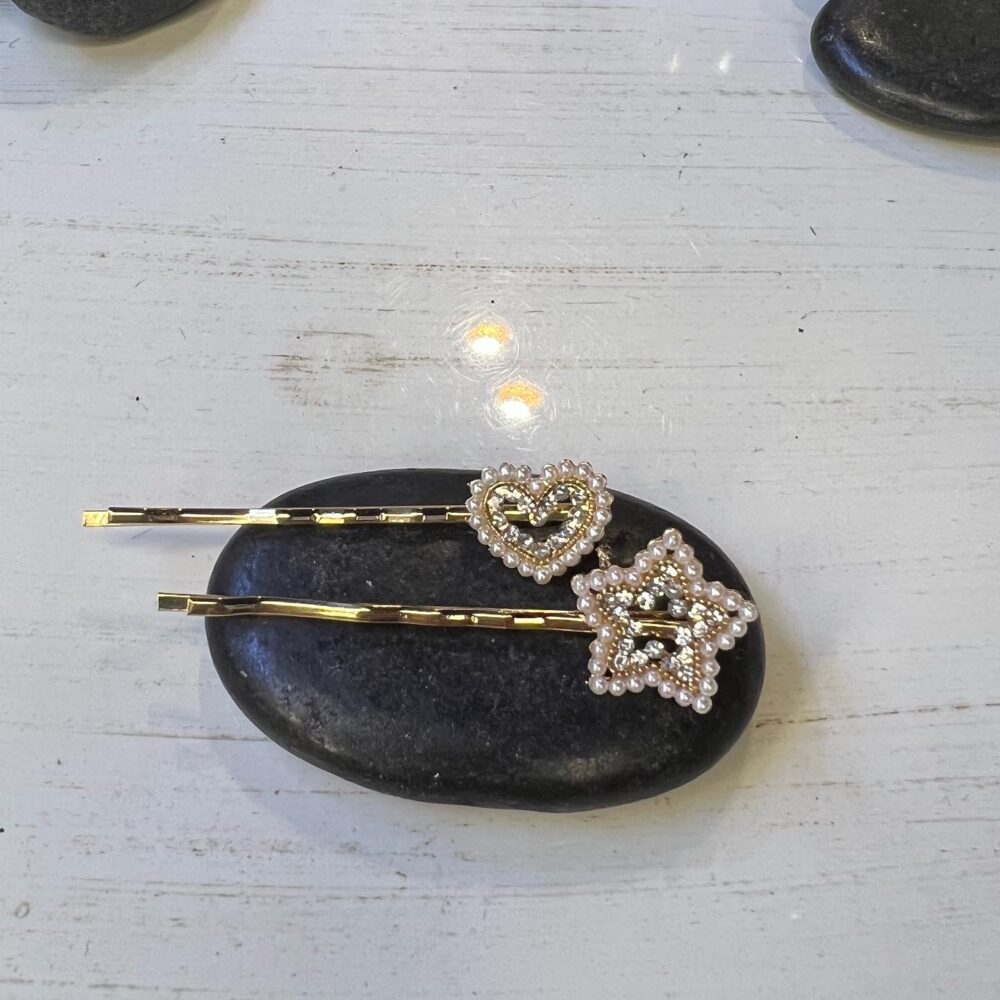 Τσιμπιδακια μαλλιών σετ 2 με σχέδιο καρδιά και αστέρι ( χρυσο )